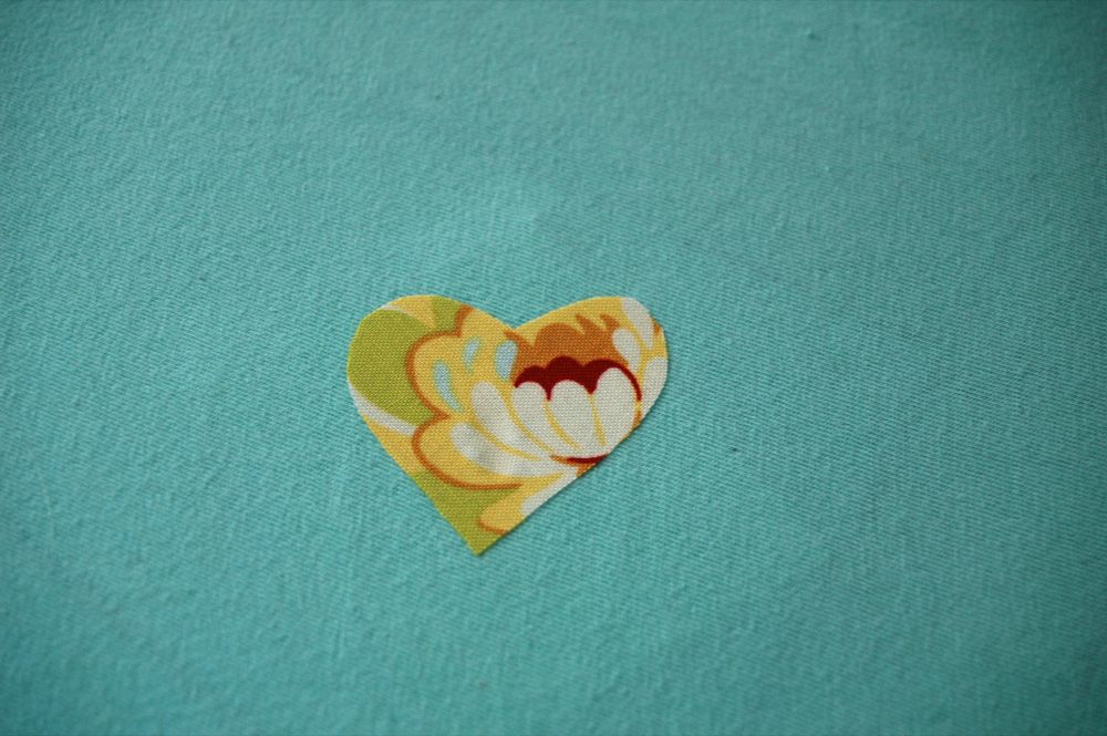 I just put the applique where I wanted it, put a piece of scrap paper behind the hole so that the applique didn’t stick to my ironing board and ironed it down.