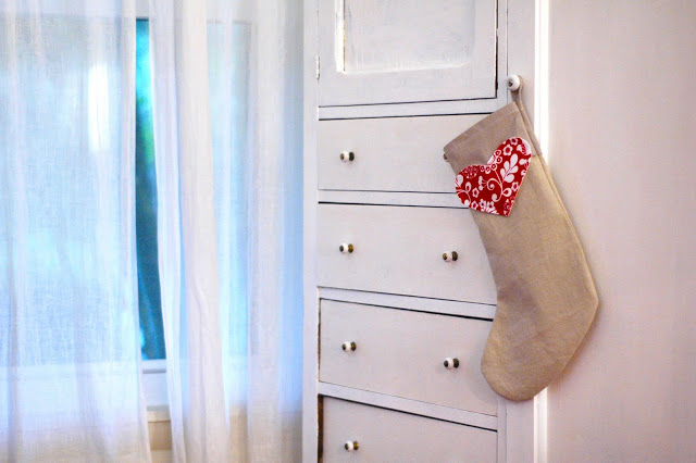 I’m passing this one off to a new crafting friend who is collecting them from several nearby crafters. I printed this stocking pattern suggested by said new friend and put some scraps Adrianna had passed on to me almost two years ago to use. The linen and striped fabrics are left over from Liam’s quilt and bumper, and the red and white fabric is one that Adrianna had fused fleece to to make ornaments. I love a fused fabric. No need to do anything to the edges. Just topstitched it on there.