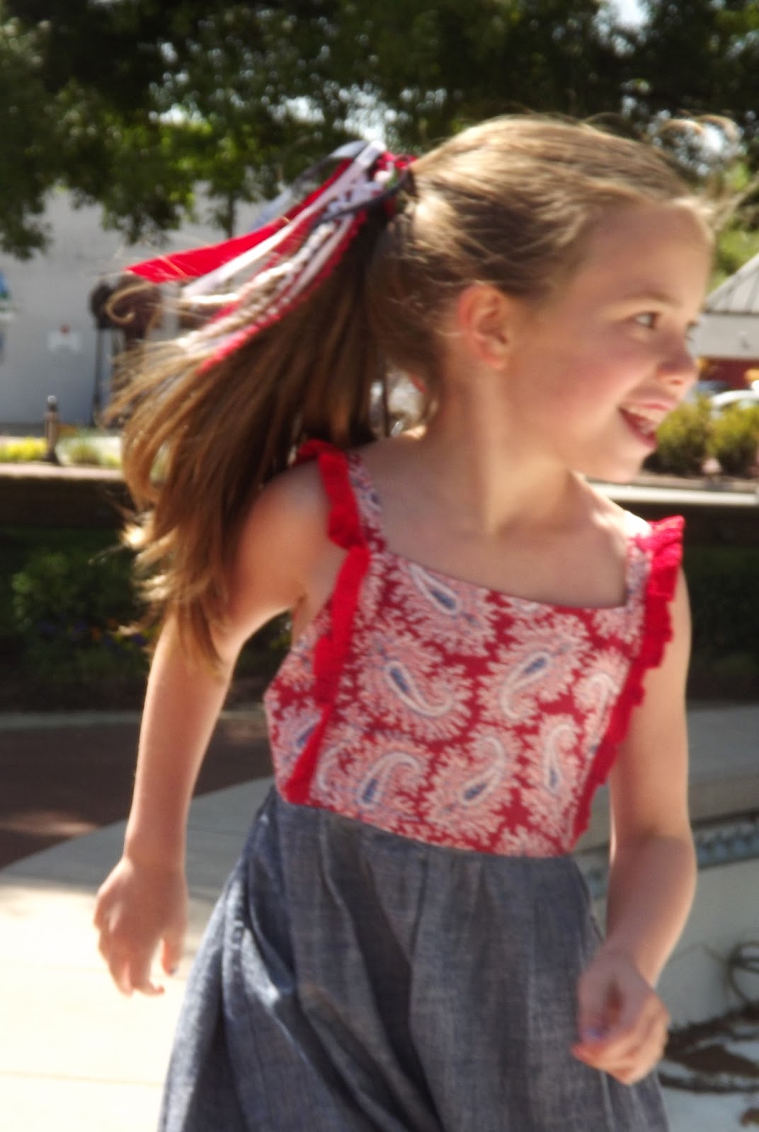 I wanted to showcase this Edelweiss that Ashley made because it reminds me that there’s a certain American holiday coming up and you guys might be thinking about whipping up some patriotic outfits.  With all the options for fabric pairing, the Edelweiss is the perfect way to throw together some red, white, and blue!  How sweet is this little girl with her matching ribbons?